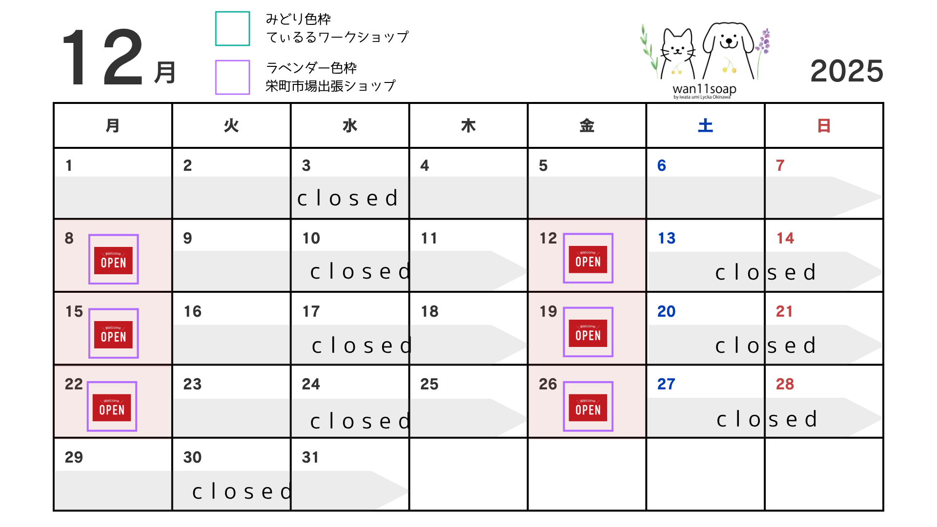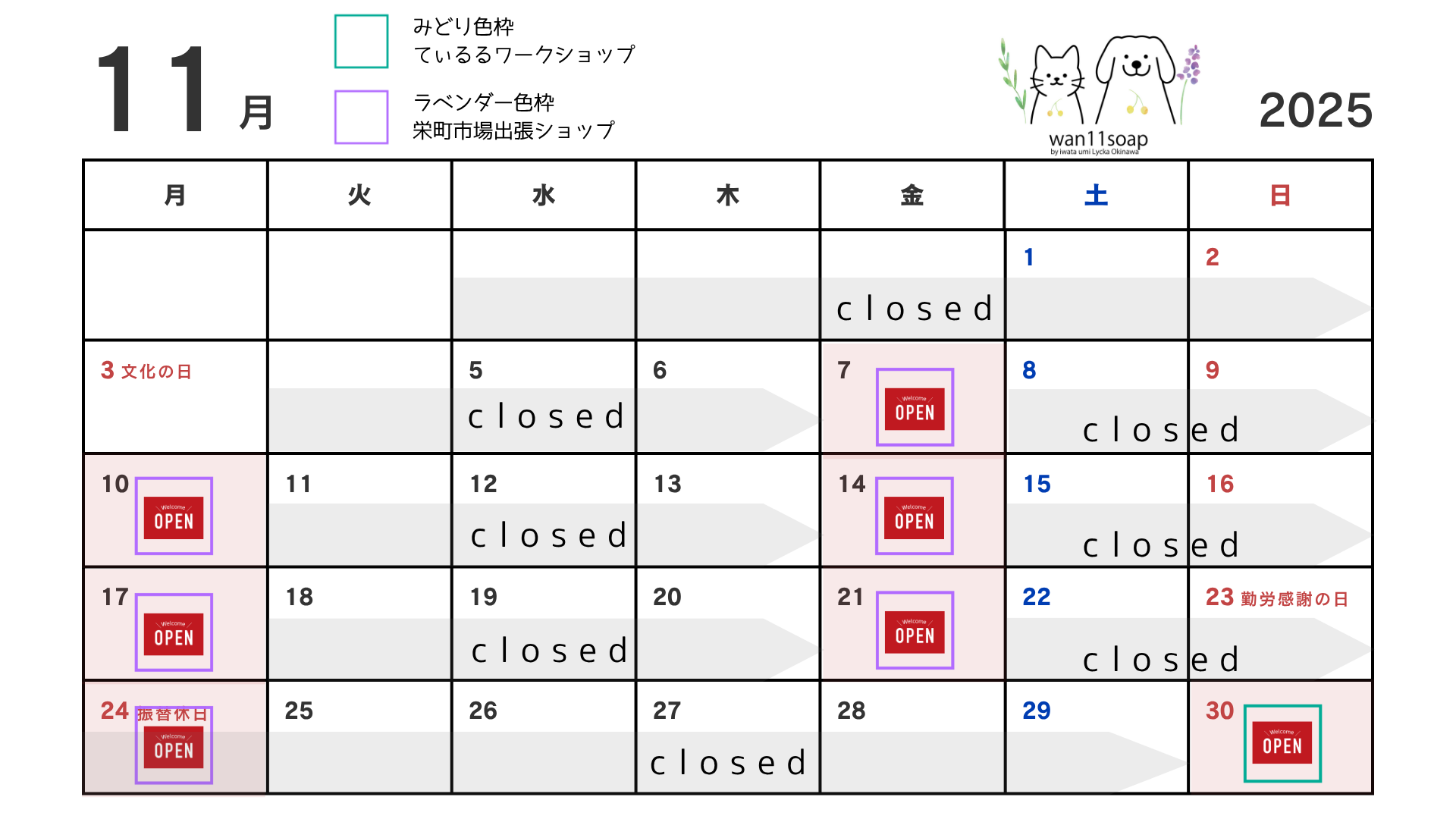 | 営業曜日 | 月曜日・金曜日 ※お休みの週もあります。 下記スケジュールをご確認ください。 |