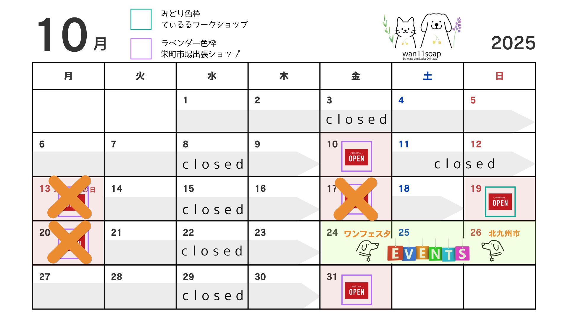 | 出張ショップ名 | wan11soap by 岩田うみ りゅっか沖縄 |